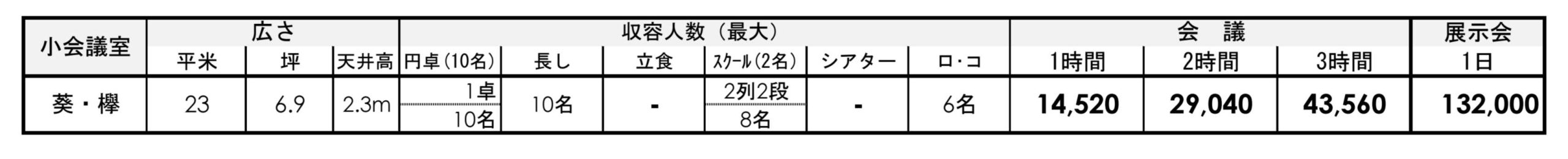 ・お食事を伴う会議のご利用については2時間を基本に室料を50%割引致します