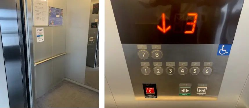 手すりの内側及び表示板には点字ブロックを設け、お身体の不自由な方にも安心してご利用いただける【思いやりエレベーター】となっています。