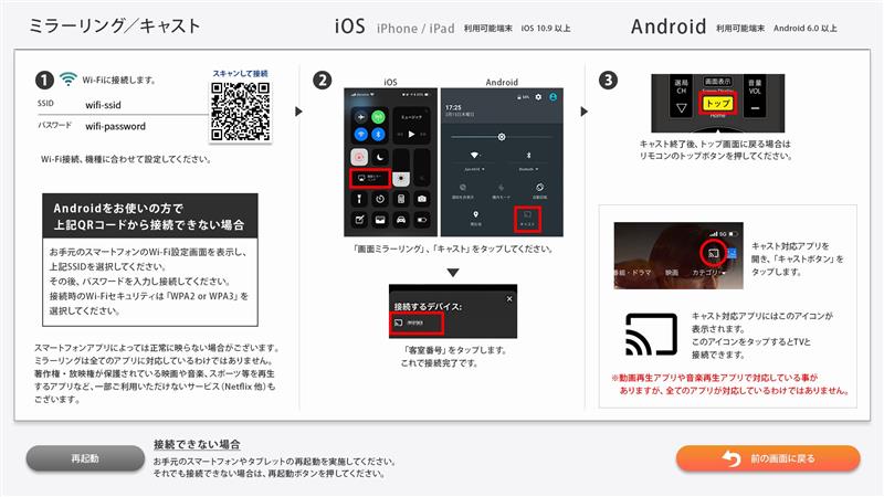 スマートフォンの画面に表示されている内容をTVに投影する「ミラーリング機能」や