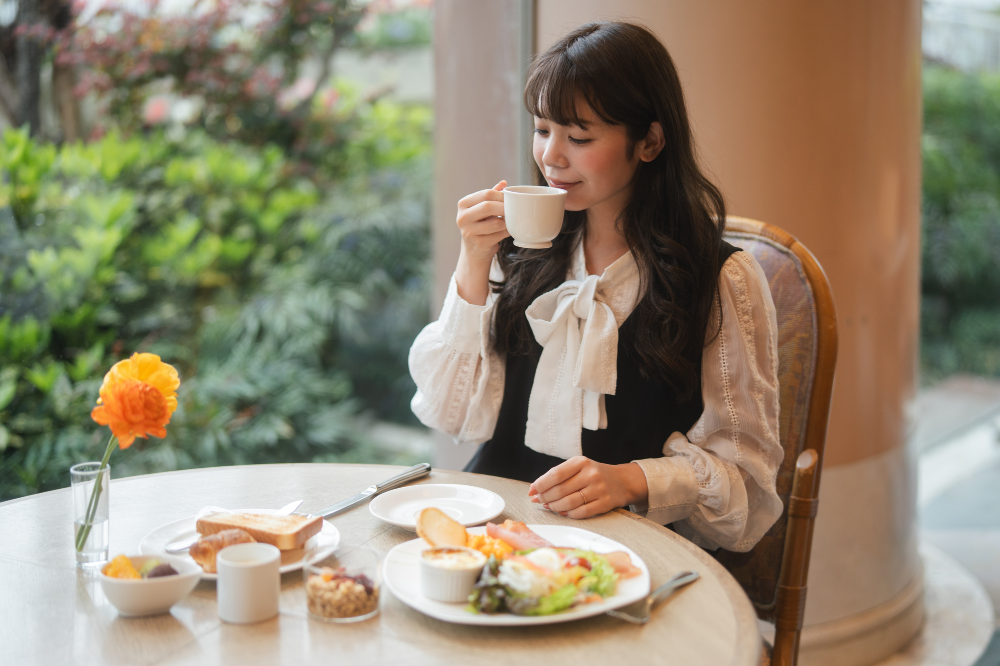 兵庫県産のお米、兵庫県丹波産の黒豆味噌汁、地卵など地元の食材を使用した自慢の朝食。すべての朝食に季節のビューティードリンクを添えて提供しています。