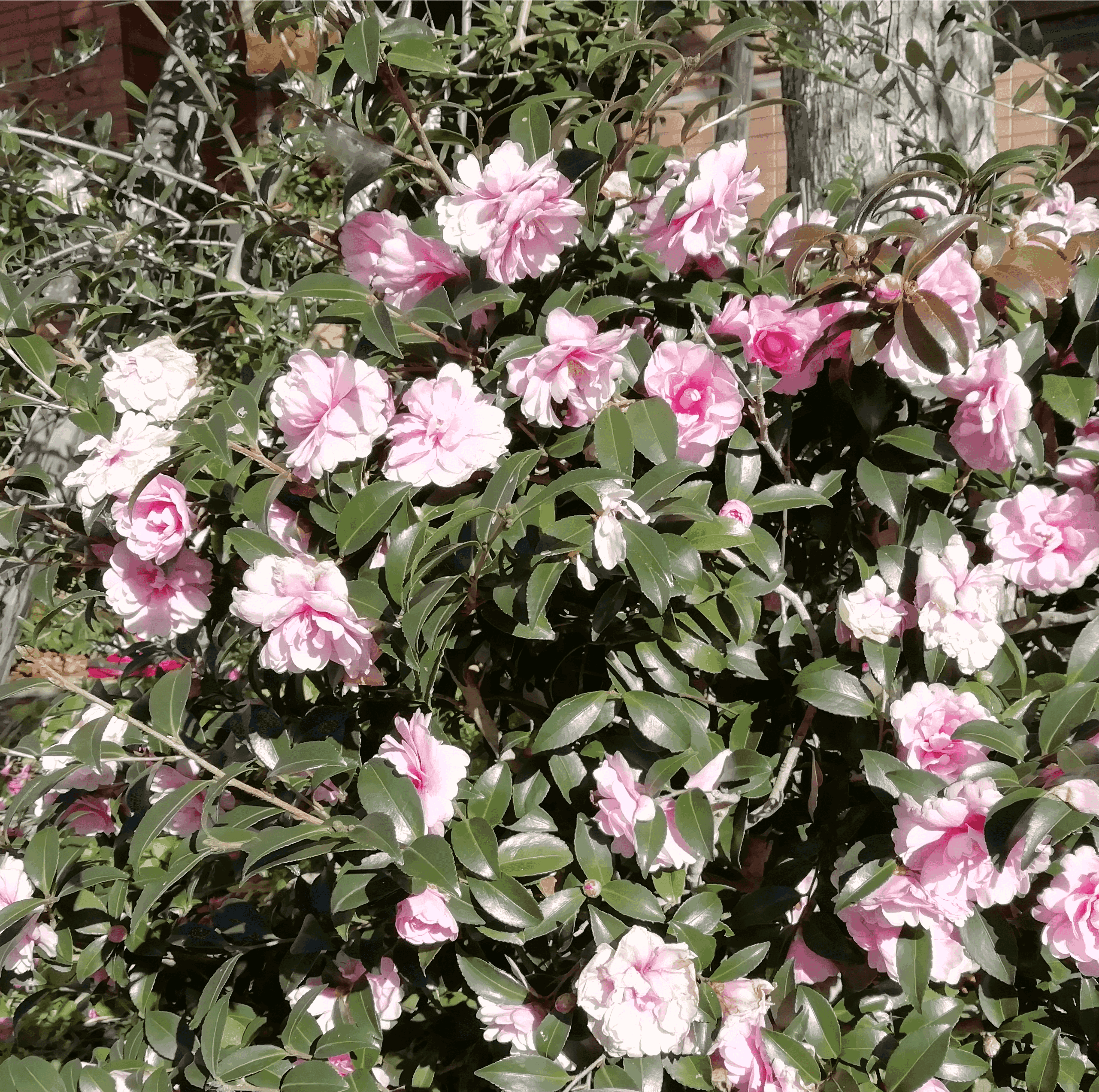 遊歩道にサザンカが満開です。