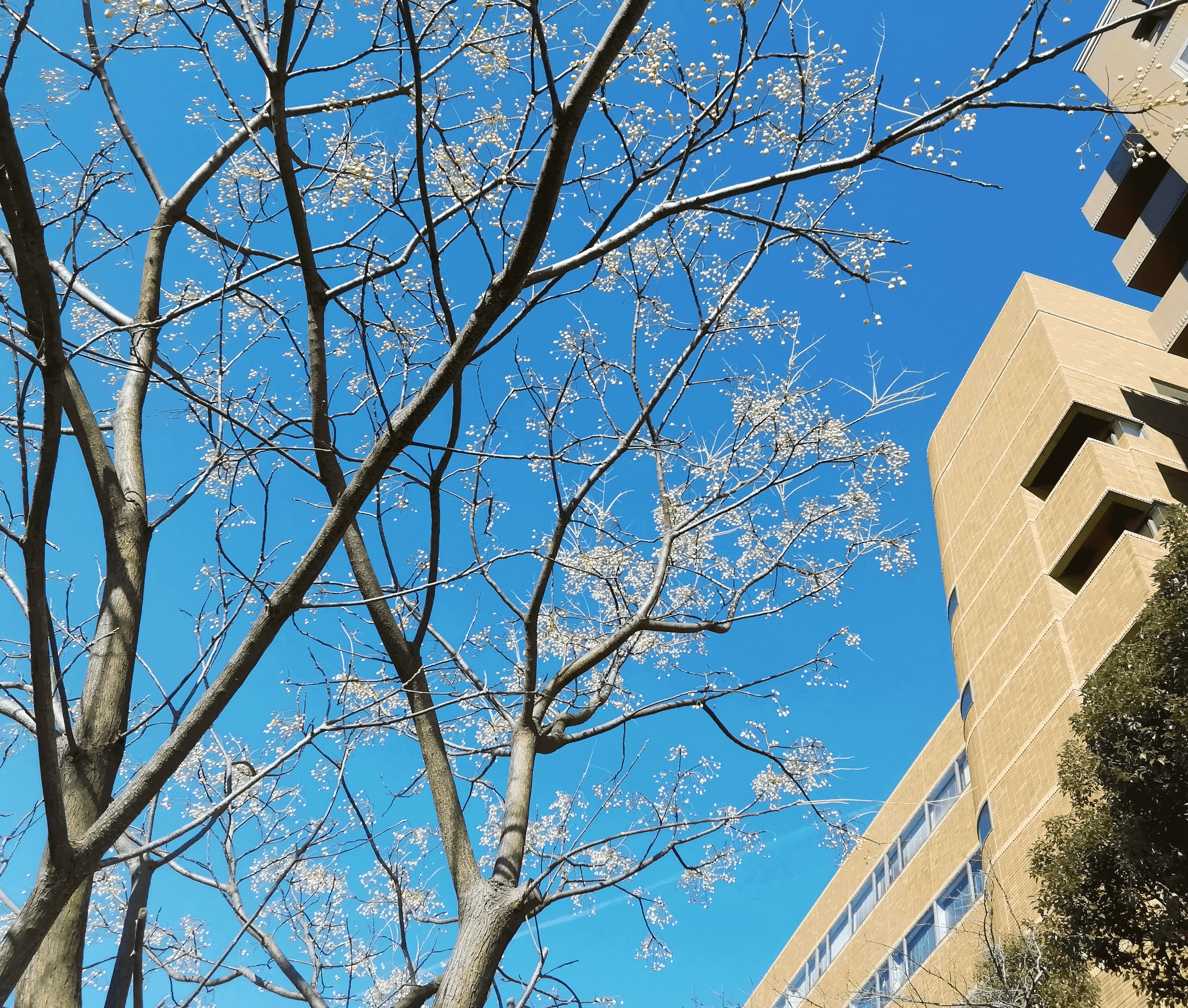 遊歩道にセンダンの実がなっています