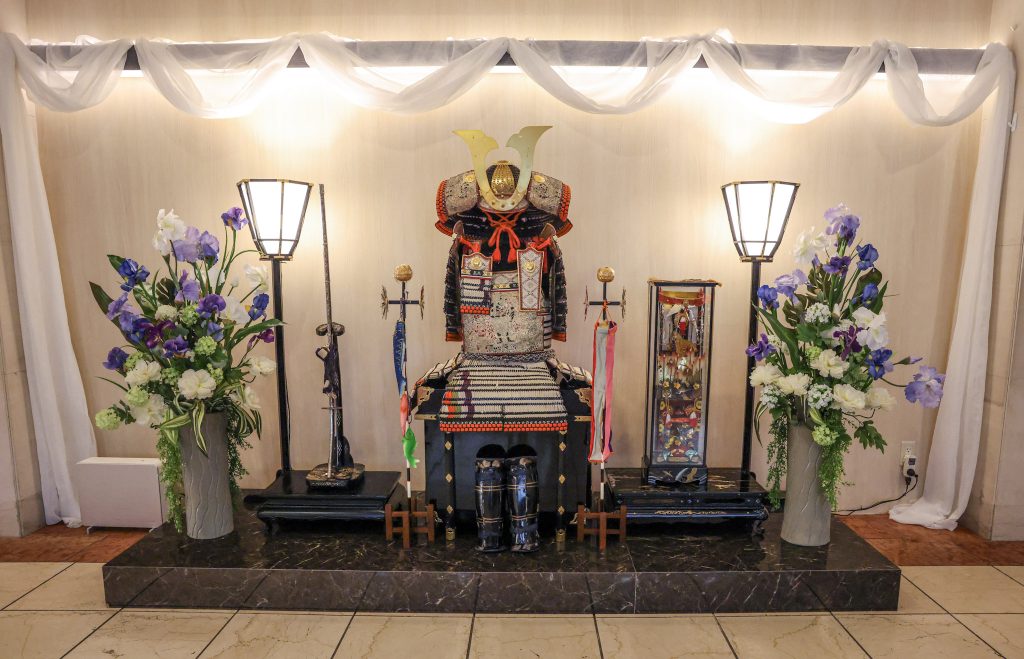ゴールデンウィーク中、ホテル5階ロビーには鎧兜の装飾を施します。ご来館の際は、迫力のある兜と一緒にぜひ記念のお写真を撮影ください。スタッフもお手伝いいたしますので、お声かけください。