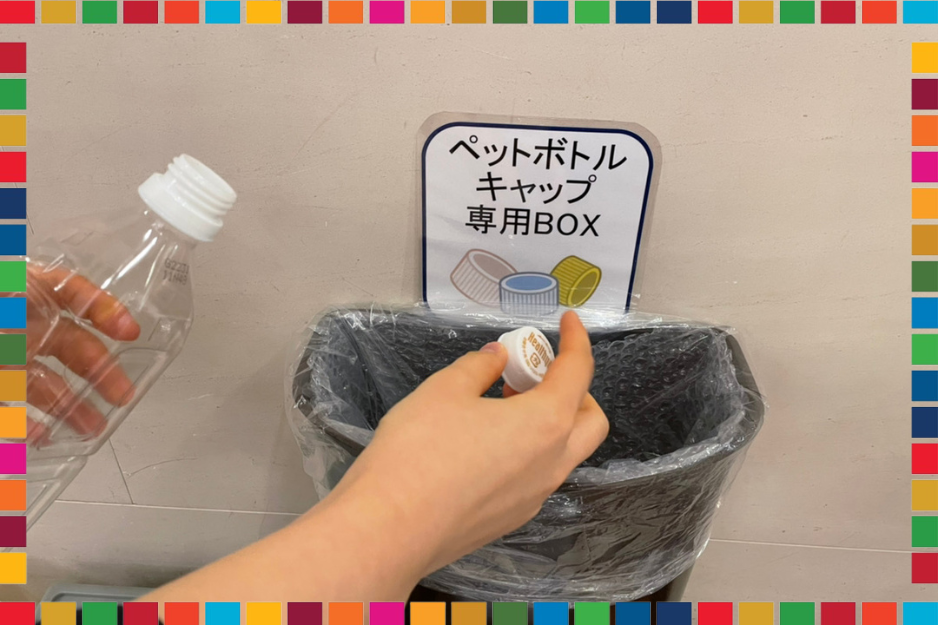 横浜市内にて運営しているNPO法人に登録し、5階ロビーに設置しているキャップを定期的に回収し寄付しています。