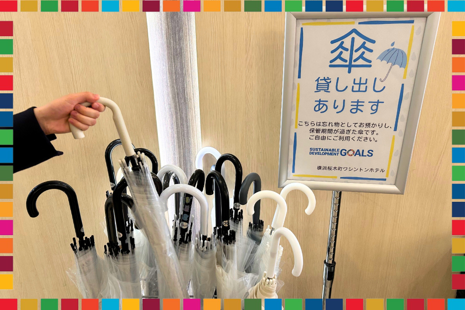 保存期間を過ぎた傘は通常処分されるが、当ホテルでは可能なものは再利用し、廃棄物の削減に努めています。これにより新しい傘の購入を抑え、資源の無駄遣いを防いでいます。