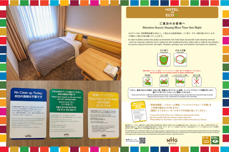 お客さまのご理解とご協力のもと、連泊の場合、通常の清掃に比べてエネルギー使用量を抑える簡易清掃となっております。