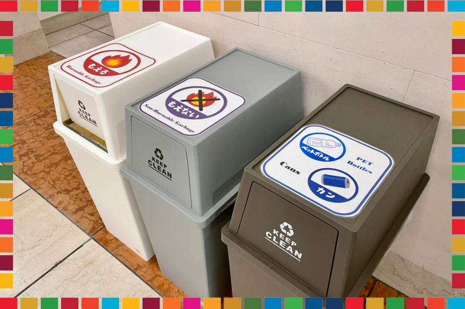 5階ロビーに、お客さまにも分別していただけるようゴミ箱を設置しています。