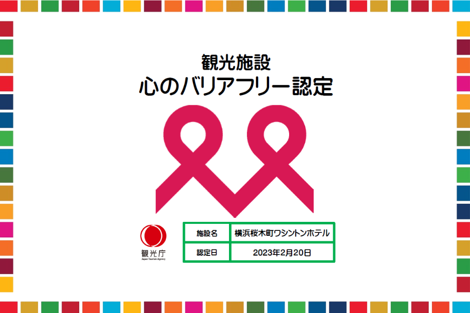 観光庁より「心のバリアフリー認定」を取得いたしました。この認定は、高齢者や障がいのある方々を含むすべてのお客さまが、安心して快適にご利用いただける環境を整備するための取り組みが評価されたものです。
