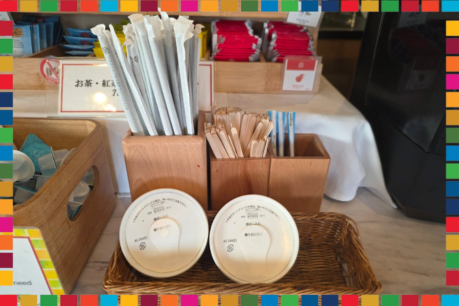 ストロー、マドラー、テイクアウト用のカップの蓋などのプラスチックで出来ていたものを廃止し、環境に優しい素材を使用しています。