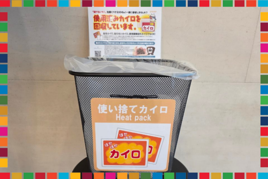 2025年冬より使い捨てカイロの回収を開始いたしました。回収したカイロはGoGreenJapan(ゴーグリーンジャパン)様へ送付し、水質浄化剤や土壌改良剤など環境保全に役立つ資源へとリサイクルされます。