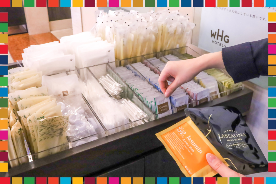 以前は客室にアメニティを設置しておりましたが、現在は歯ブラシを含むすべてのアメニティを5階ロビーにあるアメニティバーに移動しました。